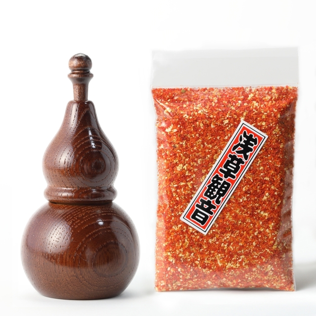 ギフトにも使えるひょうたん小こげ茶一味入れとゆず一味のセット